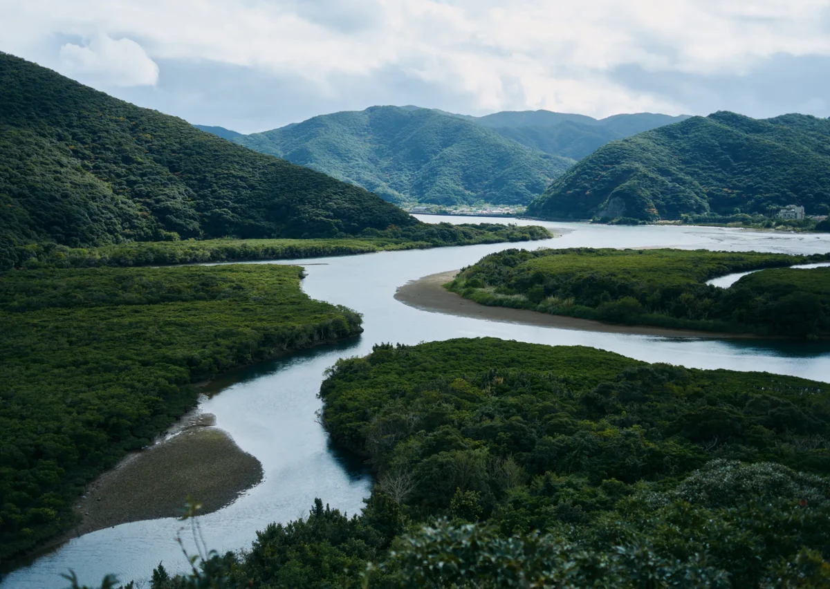 島﨑さんと一緒に結ノ島キャンプが毎年行われている会場を歩く。展望台からは日本第二の面積を誇るマングローブの森が望める。すぐそばには世界遺産センターがあり、しかも会場は国立公園内という贅沢な環境だ。