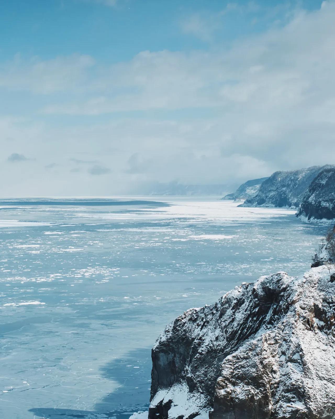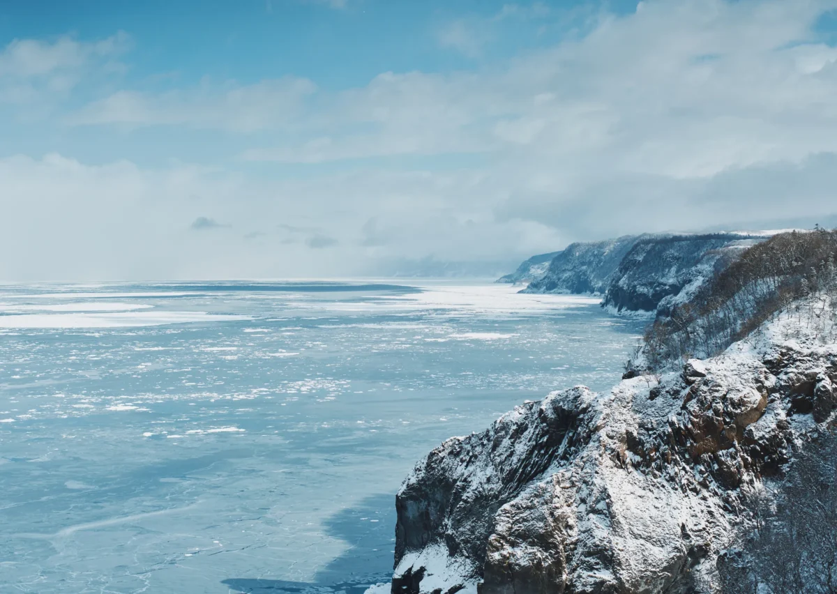 いま眼前で白く輝く、まるで雪原のような流氷は、春の訪れとともに溶け出す。