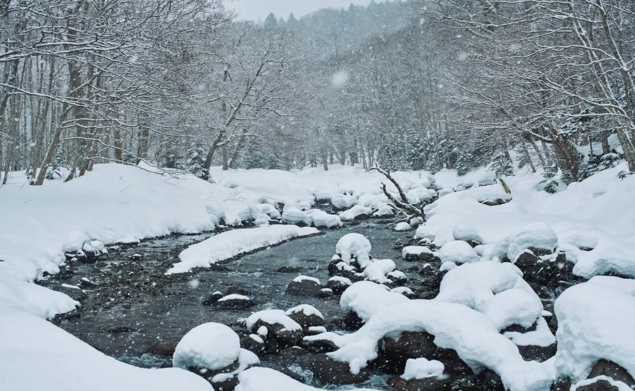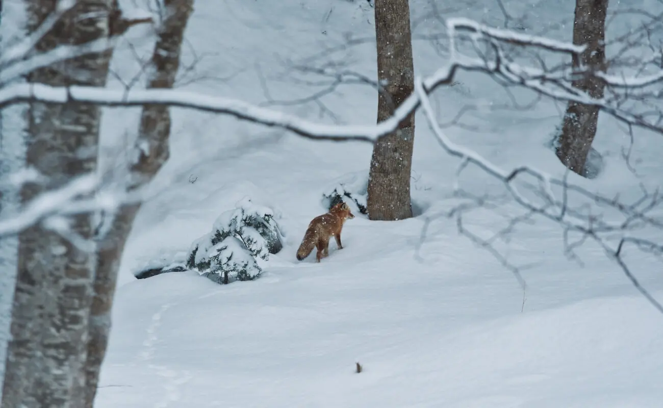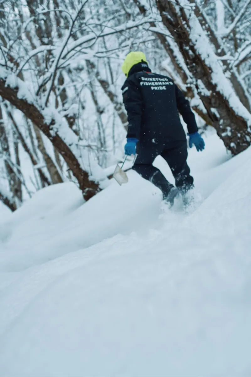 スノーシューを履き、ガイドの寺山 元さんとともに、雪深いイワウベツ川沿いへと分け入っていく。ここは「100平方メートル運動」というトラスト活動によって、保全・復元されてきた場所の一部でもある。一度人間の手によって破壊されてしまった野生を、人間の努力で復元しようとするさまざまな取り組みがされている。100年後、200年後を見据えた活動で、始まりは1977年に遡る。かなり先駆的な取り組みだ。
