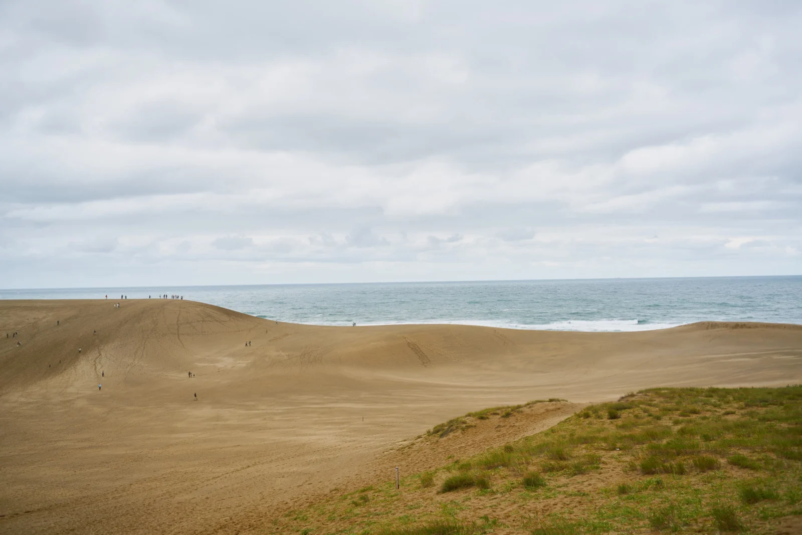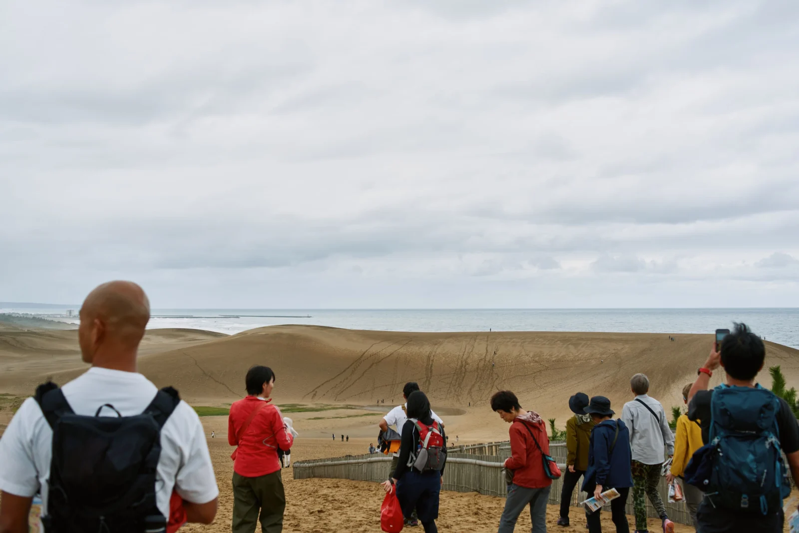 解説後に実際に砂丘に行くとそのスケールの大きさに驚いた。馬の背と呼ばれるひと際大きな丘の向こうは日本海。雨の影響で風紋は発達していなかったが、ガイドに教えていただいた砂柱を多く見ることができた。