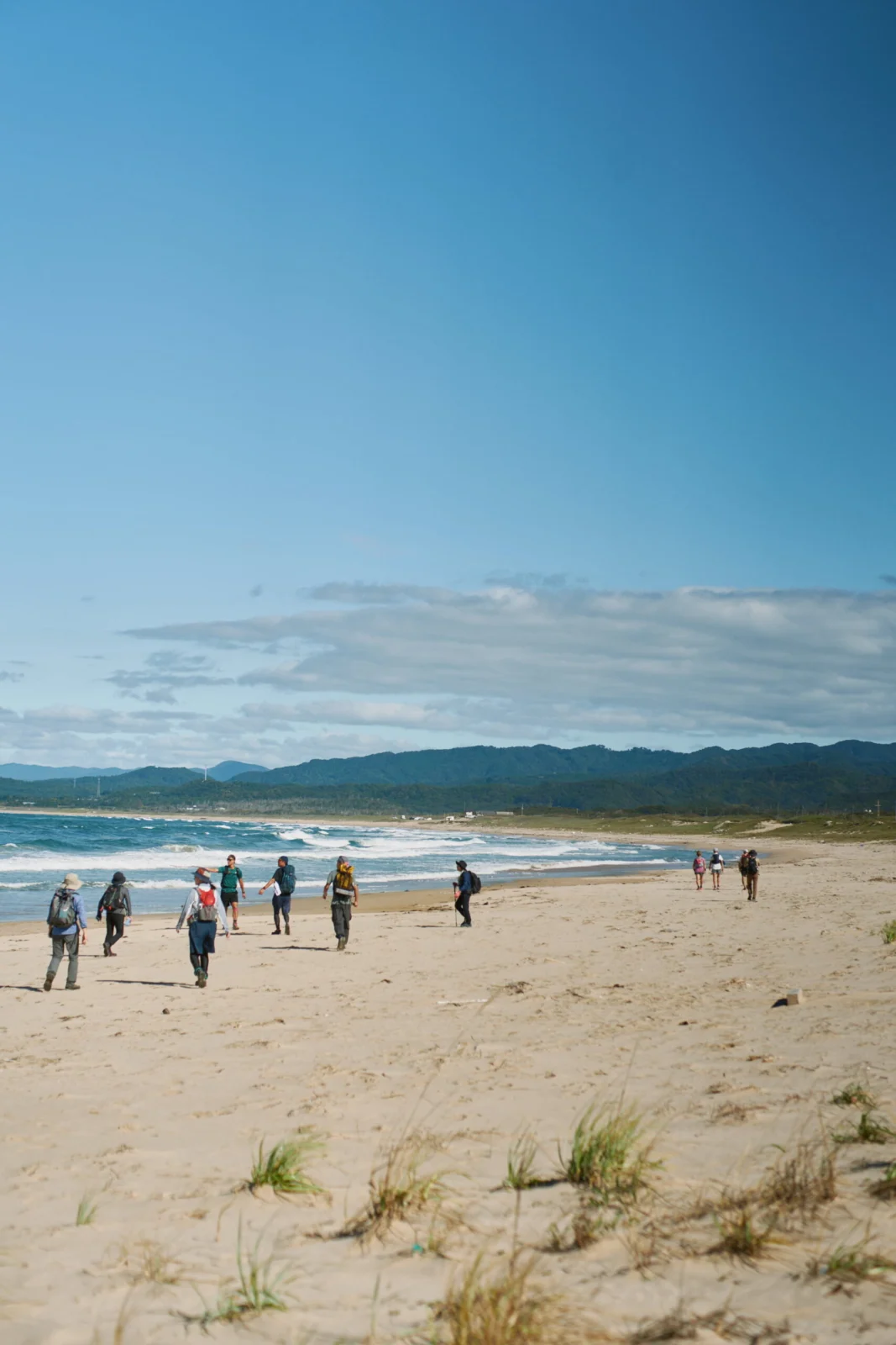 コース22は北近畿最大のロングビーチを歩くコースである。日本三景の一つ「天橋立」に似ていることから「小天橋」と呼ばれている日本海と久美浜湾を分ける砂州を歩いていく。なだらかな弧を描く白砂の海岸線がとても美しかった。途中靴を脱ぎ海に足を入れることができるのもこのコースの魅力である。