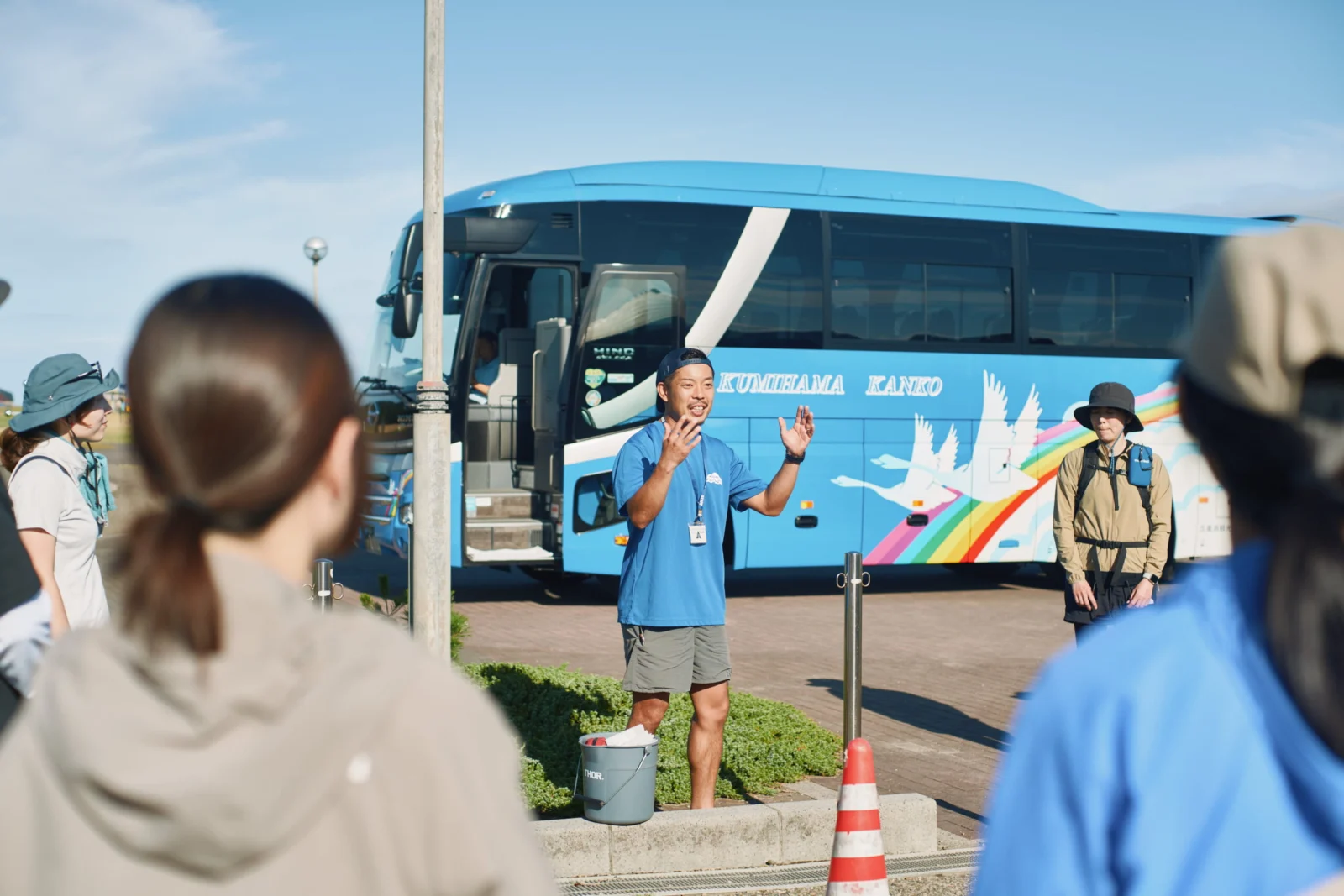 お昼前に鳥取空港、鳥取駅とそれぞれにゲストが集まった。専用車に乗り込み最初の目的地である鳥取砂丘へと向かう。バスのなかで旅の特別ゲストである田中陽希さんからご挨拶があり、皆さんから拍手があがった。