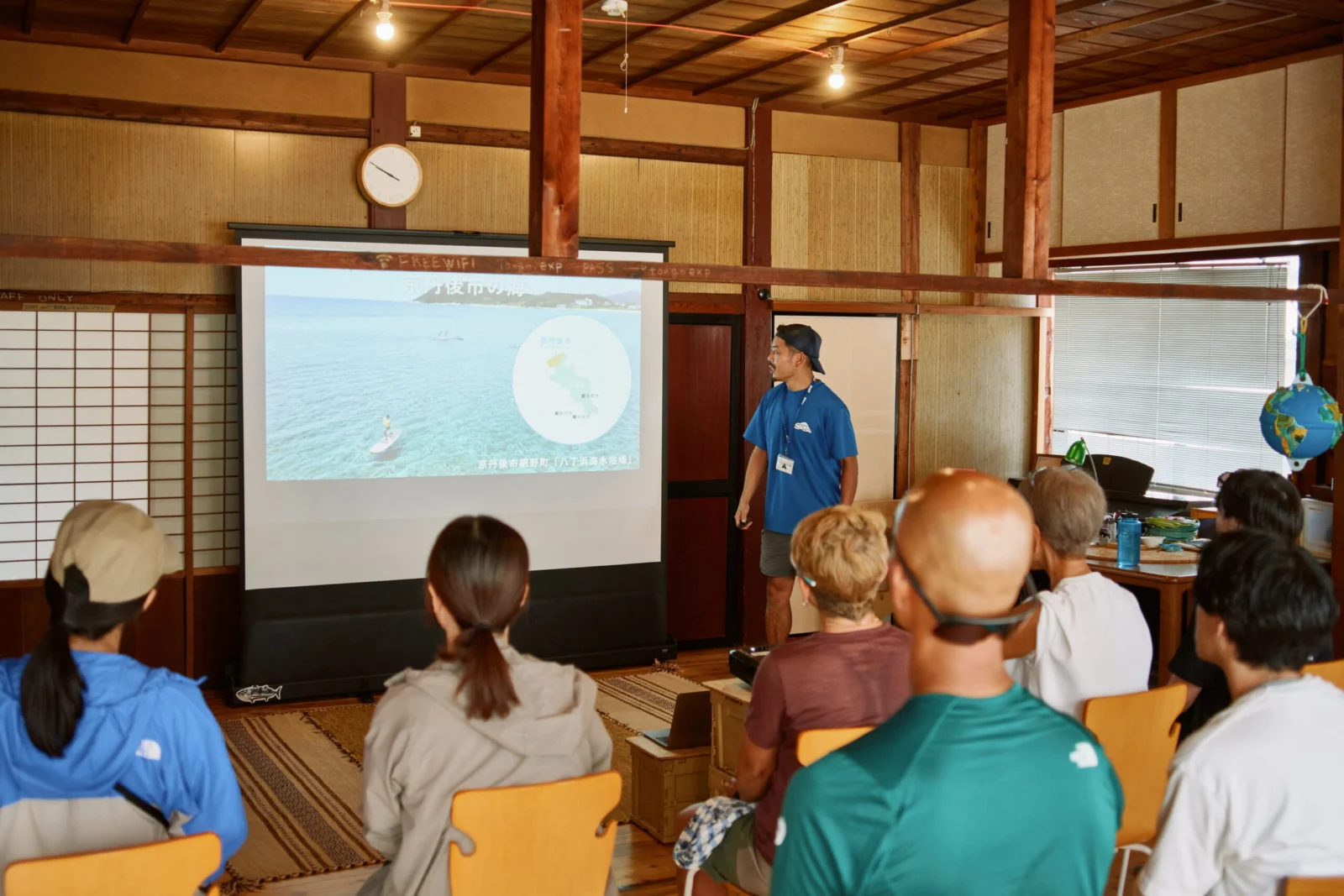 終点の夕日ヶ浦では、夕方から田中陽希さんのトークライブを開催し、県内外から多くの方に足をお運びいただいた。今まさに歩いてきた山陰海岸ジオパークトレイルのお話やグレートトラバースの思い出などをお話いただいた。