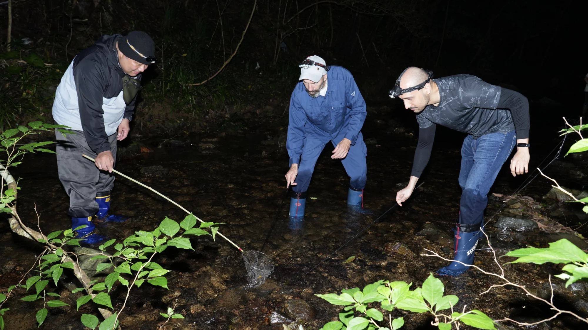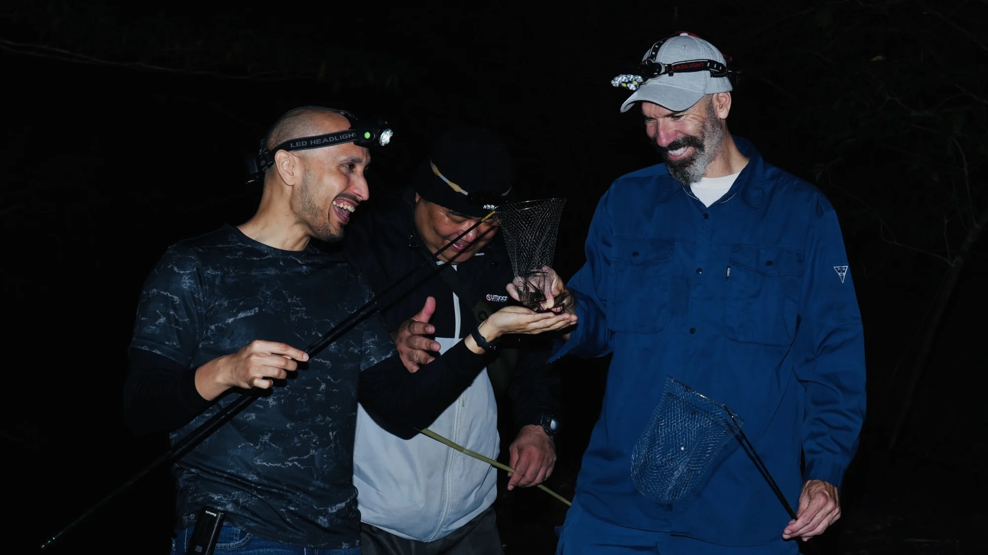 やつき川で「タンガ」と呼ばれる長腕エビの捕獲を体験します。活動が盛んになる夜に、ライトと網を使ってタンガを取ります。ぜひチャレンジしてください。