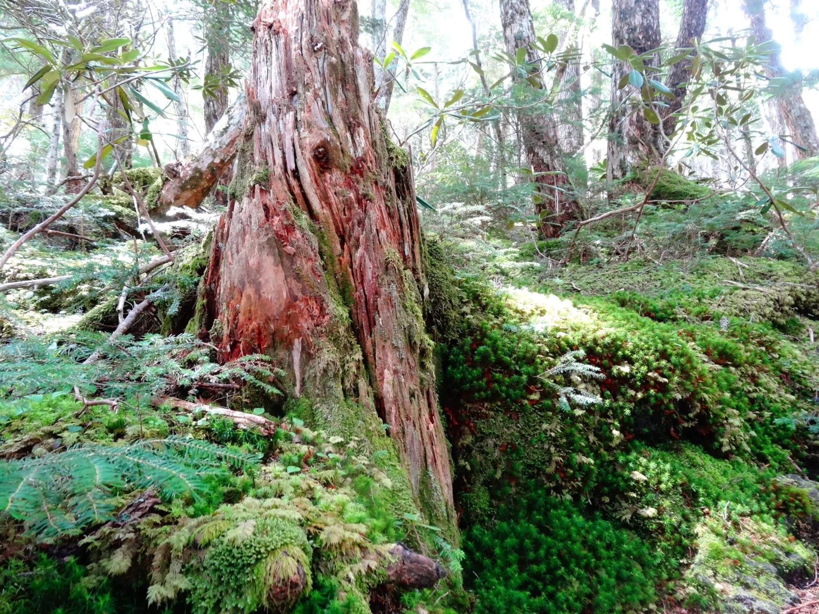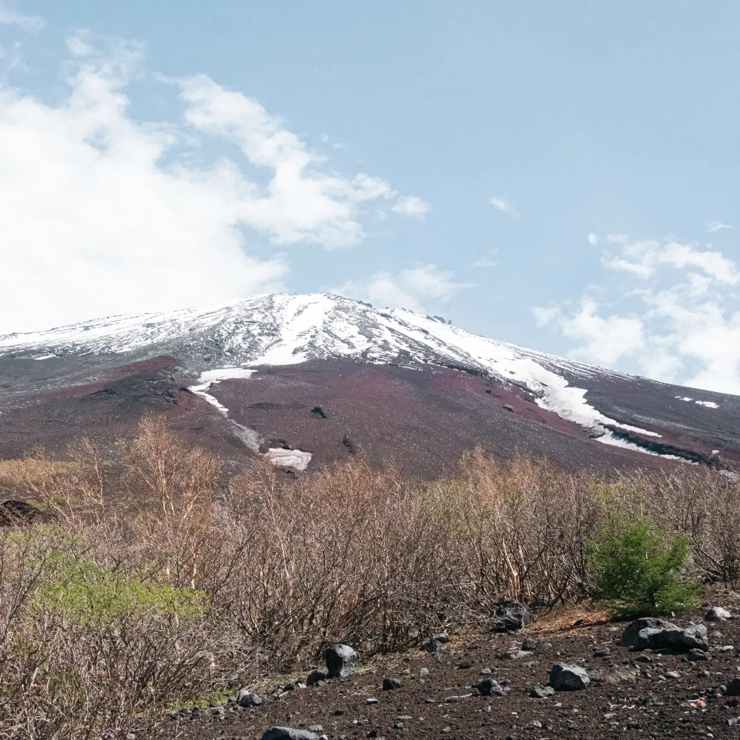 道中で見上げる富士山の迫力はもちろん、過酷な環境のなかで、たくましく育つカラマツやダケカンバの奇形樹の姿を見ることができます。またこのエリアは深い湿潤な気候で多種多様な苔に出会えるコースです。専門ガイドとともに苔の魅力も堪能しましょう。