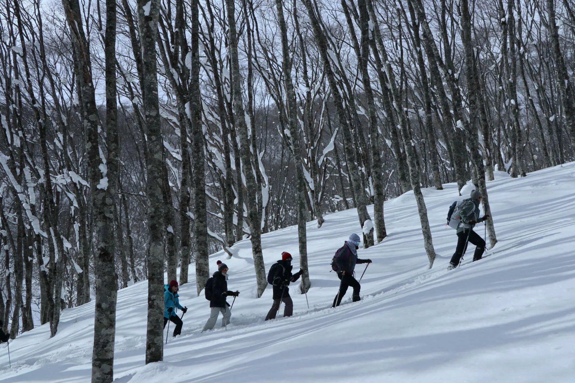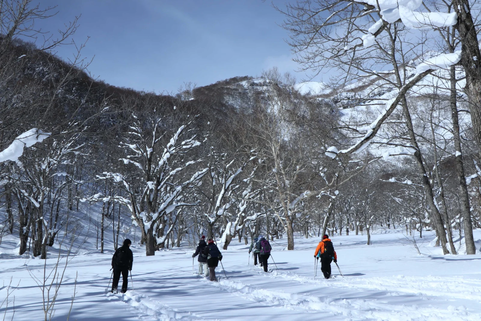 ・1日目、2日目のスノーシューでは、防寒靴(スノーブーツや登山靴、防寒長靴など)、ロングスパッツ、防水透湿性素材のジャケットとオーバーズボン、帽子、手袋、サングラス(ゴーグル)、日焼け止め、飲み物、タオル、ほか装備表をご確認ただき必要なものをご持参ください。