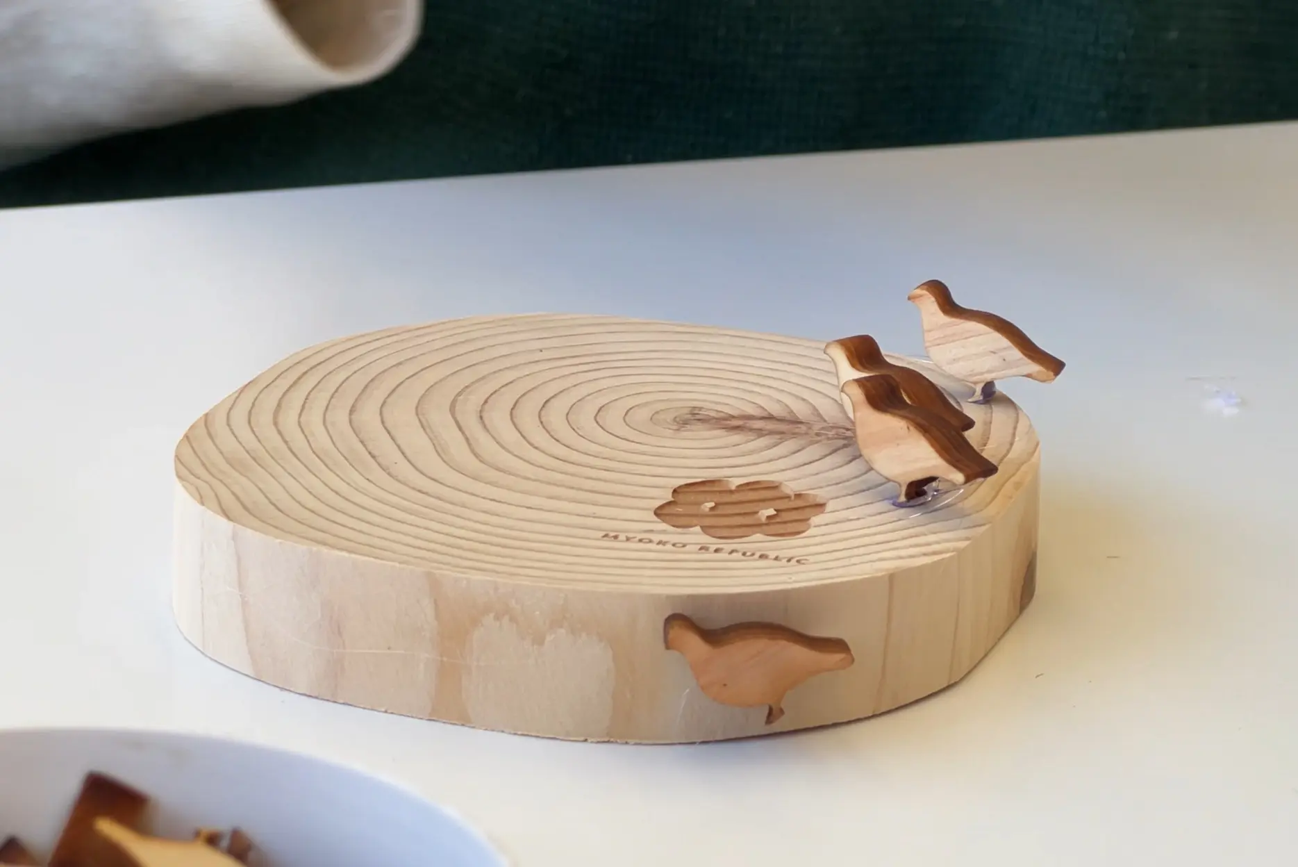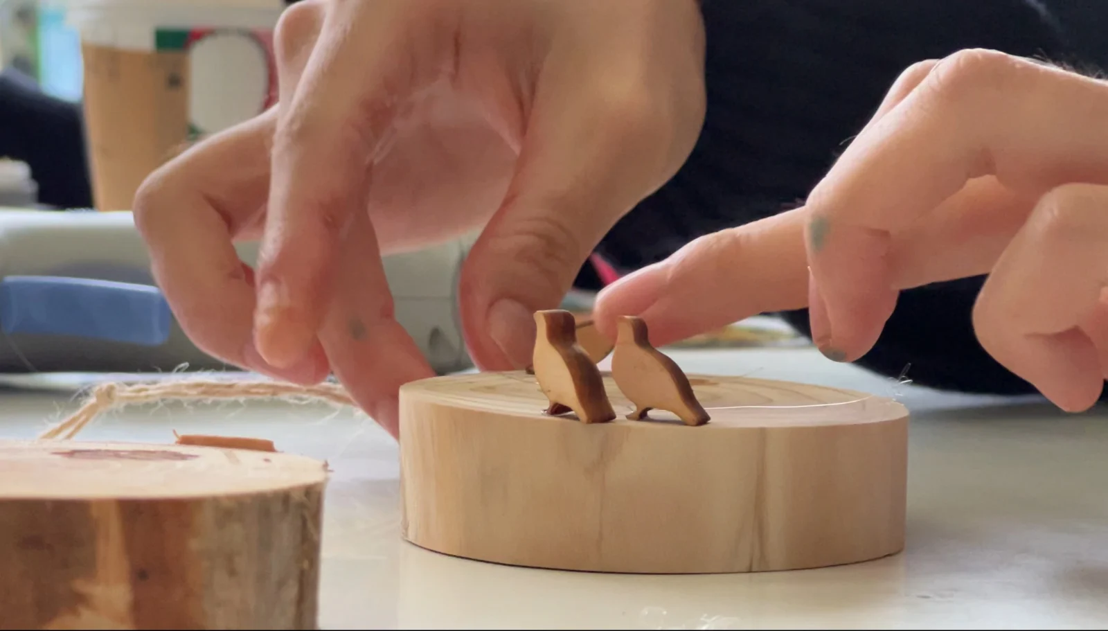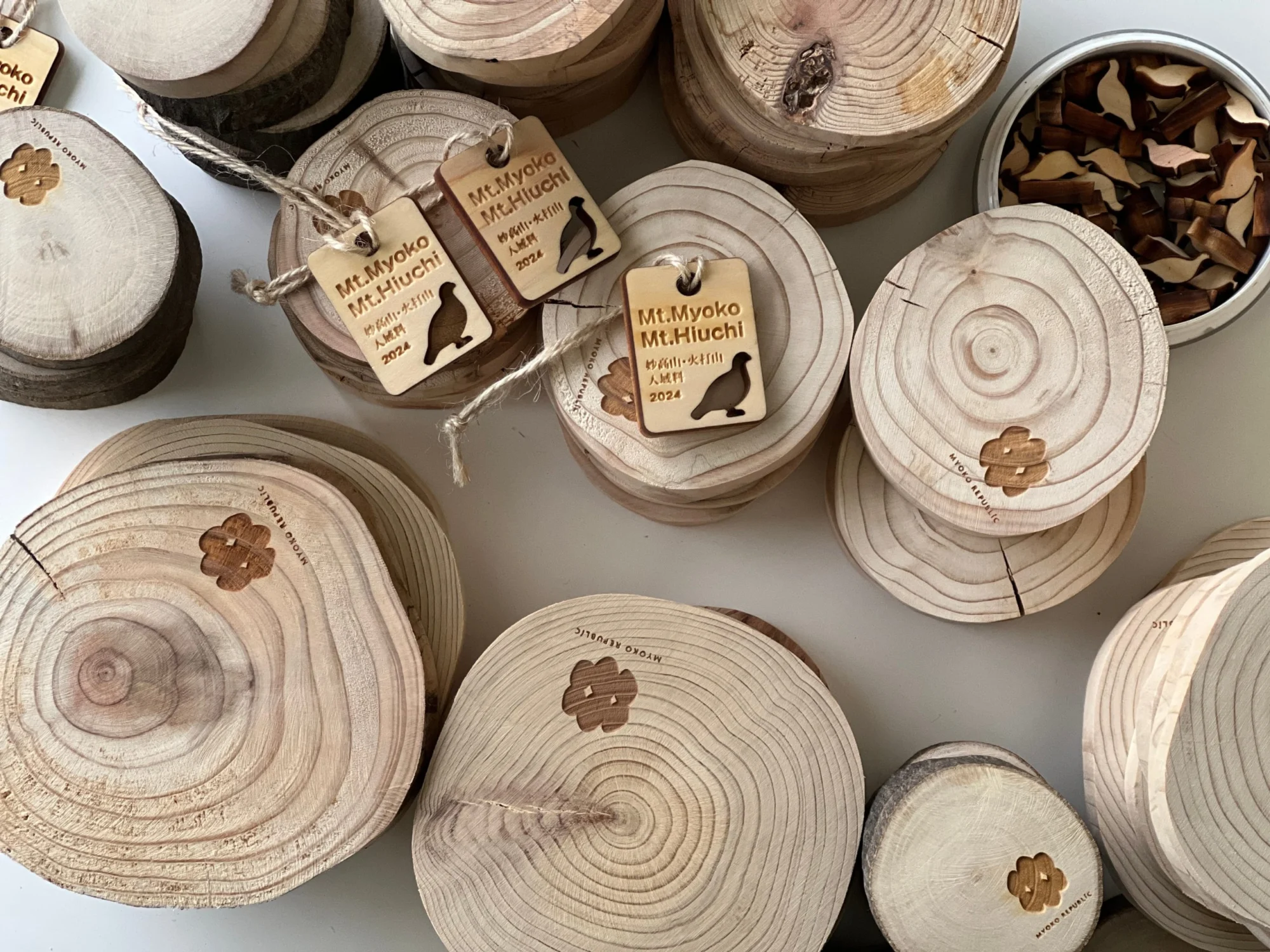 ビジターセンターへと戻ったあとは、妙高の間伐木を用いたコースター作りを実施。妙高市が指定する”国立公園妙高の鳥”であるライチョウをモチーフとした素材を思い思いに散りばめ、今まさに歩いてきた冬の森を思い返しながらコースターを作成しましょう。