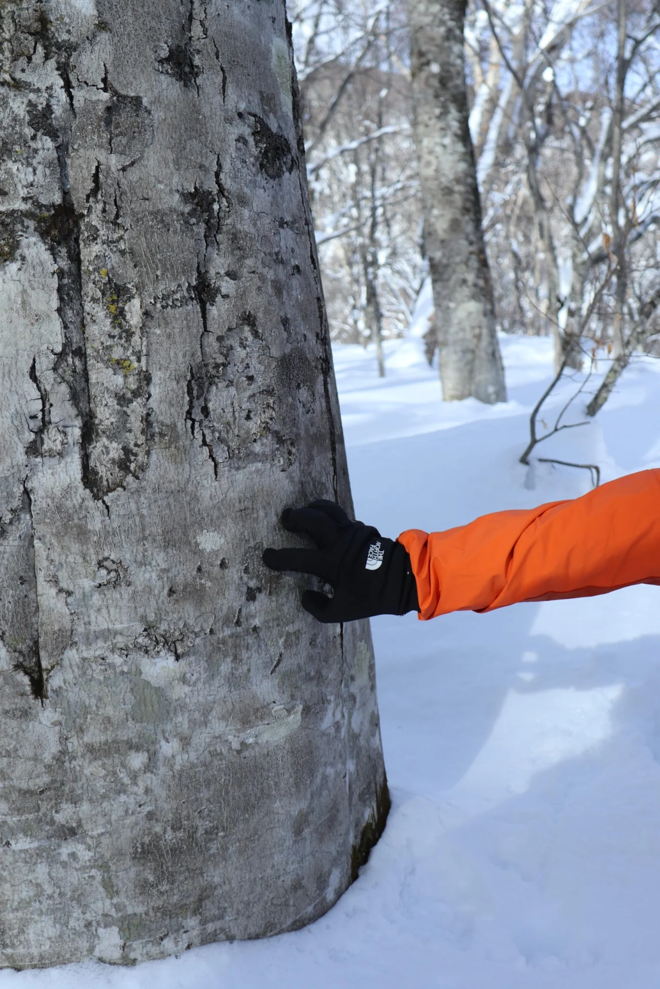 昼食後はいよいよスノーシューで白銀の世界へ。スノーシューの装着や歩き方をガイドにレクチャーしてもらいながら、グリーンシーズンには歩けないいもり池周辺の白樺や杉林のなかを散策。積もるときには1日の最大降雪量が1.5mにもなる雪に覆われた景色を楽しみます。